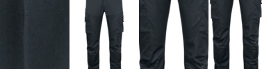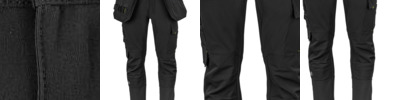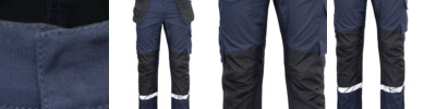 - Workpant with open side pockets and back pockets with extra width left side with flap and magnetic closure