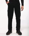 Soft-feel, wrinkle-free stretch fabric, springs back to shape. Elastomultiester fibres' unique structure provides a recycled fabric choice and Elastomultielastane: moisture-wicking properties and increased resistance to damage lead to longer-lasting garments. 9 pockets including reinforced ruler pocket, multicompartment thigh pockets, and expandable back pockets. Trebel stitched critical seams. Side elasticated waistband with high back. Ankle scuff panel masks grime. Articulated knee zone. Zip fly with rivet. Hammer loop. Belt loops. Slim fit. Elastane-free. TPU-free.