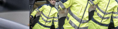 Softshell three layer bonded fabric, Breathable up to 3000mm and water-resistant up to 8000mm, Zip through front, Two zip closing side pockets, One zip closing left sleeve pocket, 3000gsm/24h breathable and 8000mm water resistant