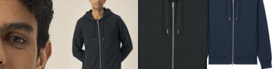Unisex cotton modal zip-through hoodie. Set-in sleeves. Double-layered hood in self-fabric. Round drawcords in a matching colour. Closed-end metal tipping. Metal eyelets. 1x1 rib at sleeve cuffs and hem. Inside herringbone back neck tape. Self-fabric half-moon at the back neck. Welt pockets. Two-way zip at centre front. Contains 65% OCS-certified organic cotton, certified by Control Union CB-CUC-1393082. Contains 35% Modal (TENCEL™).