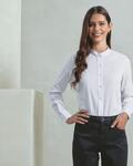 Classic banded grandad collar with top button fastening, Double button cuff and sleeve guard, Pearlised buttons, Bust and back darts, Worldwide Responsible Accredited Production (WRAP) certified production