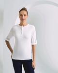 Roll sleeve with button and tab fastening on the upper arm, Round neck with three button placket, Ribbed bound neck and cuffs, Soft and stretchy fabric feel