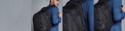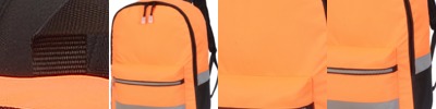 - One main compartment, a second in the front and a third zipped compartment at the top