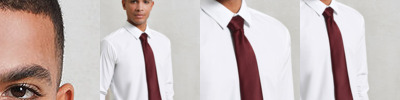 Lustrous satin clip tie. Narrow blade width, 3.34" / 8.5cm. Made from OEKO-TEX Standard 100 Fabric. Steel clip. Complements PR750. Dimensions: Narrow blade width - 3.5"/8.5cm