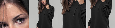 Loose terry. Slub Jersey - neutral size label without branding. Extra long on the back. Fashionable shaped hem. Rip cuff at the hem. hood with single seam and flat drawstrings.