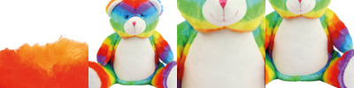 Multi-coloured soft plush bear. Contrast sewn nose and eyes. Cream coloured panel on tummy and feet. Zip access on the base of the bear for direct access onto the tummy for embroidery. Removable inner stuffing. Can be embroidered or sublimation printed. Complies with EN71 European Toy Safety regulations. Remove all hang tags and their fasteners before giving these items to a child. Suitable for children of all ages.