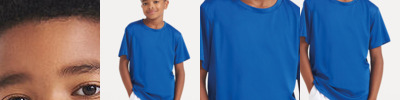 Classic crew neck T in relaxed kids fit. Featuring high performance wicking fabric, crew neck and smooth fabric face.