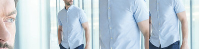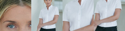 DETAILS: Shaped pleats. curved hem and toned contrast details. Buttons in mother-of-pearl colour. Third collar button at collar centerback. SUSTAINABILITY: Reach. Global Compact. Amfori. Accord. OEKO-TEX