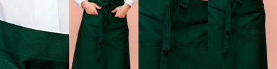 65% polyester/35% cotton. Large front pocket with two compartments. Self fabric ties. Width 90cm. Length 65cm. Domestic wash 60°C.