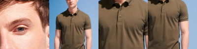 65% polyester/35% ringspun cotton. 1x1 ribbed knit collar and cuffs. Taped neck. Three self colour button placket. Reinforced shoulder seams. Twin needle hem. 60°C wash.