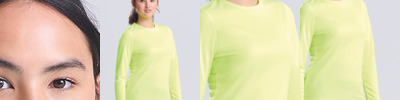 Self-fabric crew neck, set in sleeve design, AWDis' own Neoteric™ textured fabric with inherent wickability and quick drying properties, girlie fit, self-fabric taped back neck, twin needle stiching detail, simple tear off label makes it perfect for rebranding, UPF 30+ UV protection. Worldwide Responsible Accredited Production (WRAP) certified production. WRAP certified. Vegan certified. BSCI certified. Oeko-Tex certified. SEDEX certified.