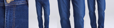 Straight fit, stretch denim, 5 pocket styling, light blasting and whiskering, self-fabric belt loops, shank button and YKK zip fly fastening, metal rivet detail at pocket corners, twin needle stitching detail.