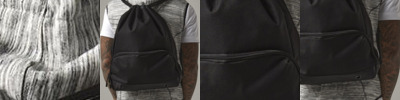 300D Polyester. Tearaway label for ease of rebranding. Hidden stash pocket. Chunky draw cords. Water-resistant fabric.