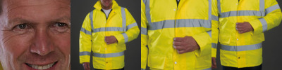 Conforms to EN ISO471:2013 Class 3 & EN343 against foul weather. Orange also conforms to GO/RT 3279. Waterproof PU coated Polyester with 190g quilted padding and Nylon lining. Heavy-duty zip with studded storm flap. 2 outer pockets with storm flaps. Knitted storm-cuffs in the sleeve ends. Concealed hood with draw cord adjuster. Inside breast pocket. Fully stitched and taped seams to ensure waterproof. Matching trousers available, reference HVS461, HVS462 & HVS463.