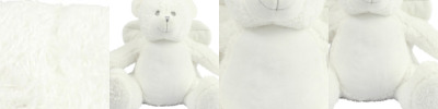 Soft plush angel. Contrast eyes and nose. Cream fabric wings. Cream coloured panel on tummy. Zip access on base for direct access onto the tummy for decoration. Removable inner stuffing. Can be embroidered or sublimation printed. Complies with EN71 European Toy Safety regulations. Remove all hang tags and their fasteners before giving these items to a child. Suitable for children of all ages.