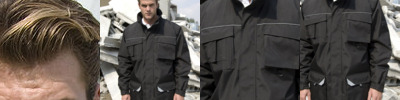 Full front heavy 2-way zip. Stud and tear release front storm flap. Zip-off adjustable hood. Adjustable shockcord hem. Front patch pockets with tear release close and side handwarmer entry, inside and outside chest pockets. Fully taped seams. Tear release external cuff with inner rib storm cuff. Reflective piping detail. Diamond quilted lining. Dobby design contrast panelling. Interchangeable pull system on all zips. Hangtag. Soft feel tricot lined collar.