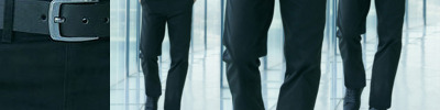 Flat front, straight leg, slim fit. 2 back pockets with button. Dyed to match buttons. Front side pockets. Dyed to match pocket bags. Belt loops.